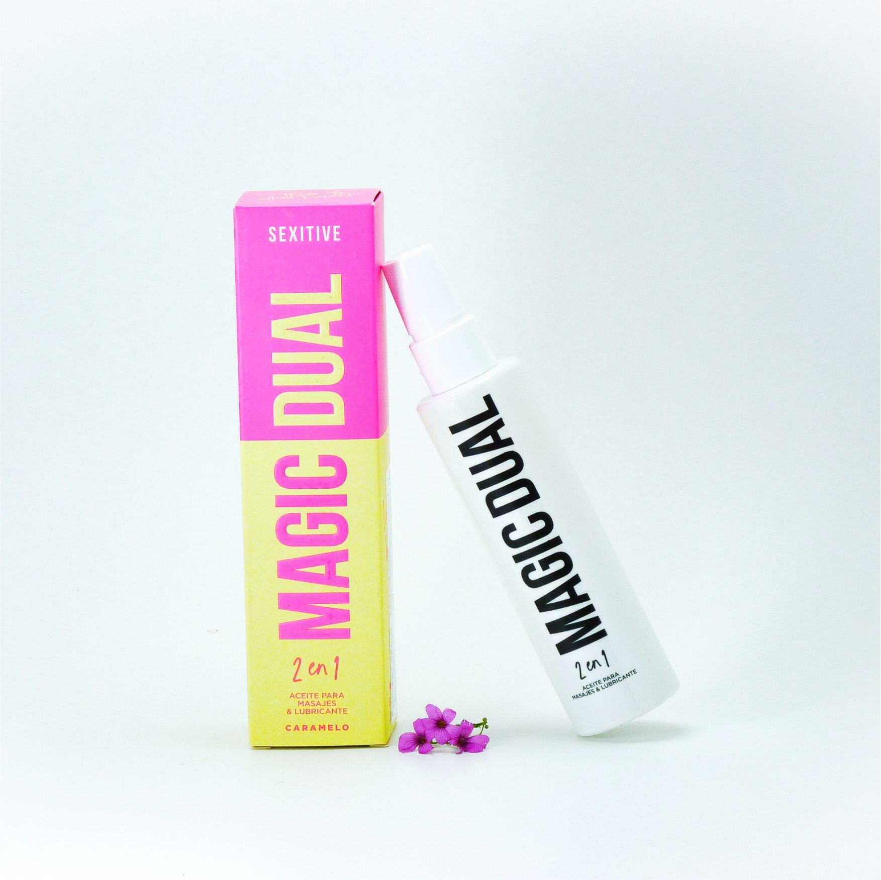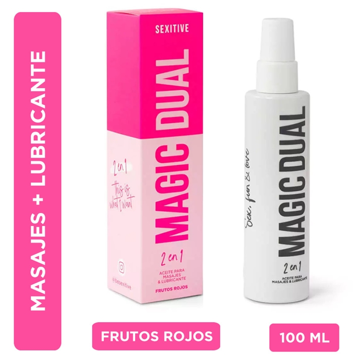 Sumergite en la dulzura de la tentación con nuestro aceite para masajes y lubricante íntimo Magic Dual.